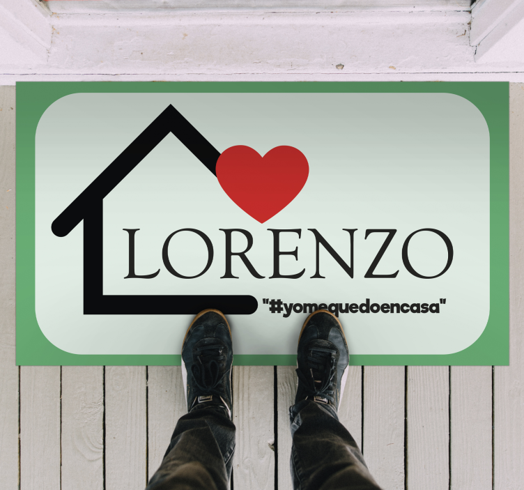 Alfombra de vinilo con nombre Familia me quedo en casa
