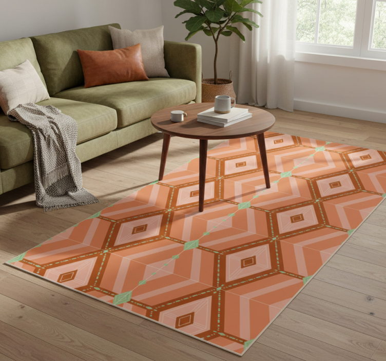 Alfombra de vinilo geométrica tonos otoñales 30s
