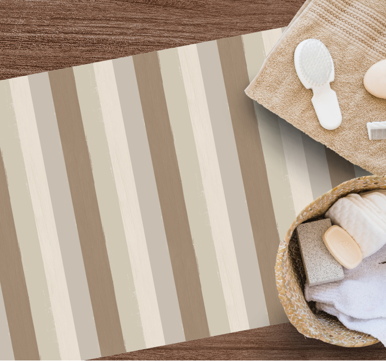 Disfruta de una elegante alfombra de vinilo con patrón de rayas. El diseño ilustra líneas de rayas verticales grandes que tienen textura de pintura a mano de colores neutros. Esto es perfecto para cualquier lugar de la casa y también para exteriores. El producto es de calidad, es muy duradero, resistente y fácil de limpiar. Está disponible en diferentes opciones de tamaño para elegir. La impresión de tinta es de calidad y es ecológica. Haz el pedido de la alfombrilla con diseño de rayas grandes en la opción correcta para recibirla en pocos días y en perfectas condiciones.Alfombra de rayas de color arena