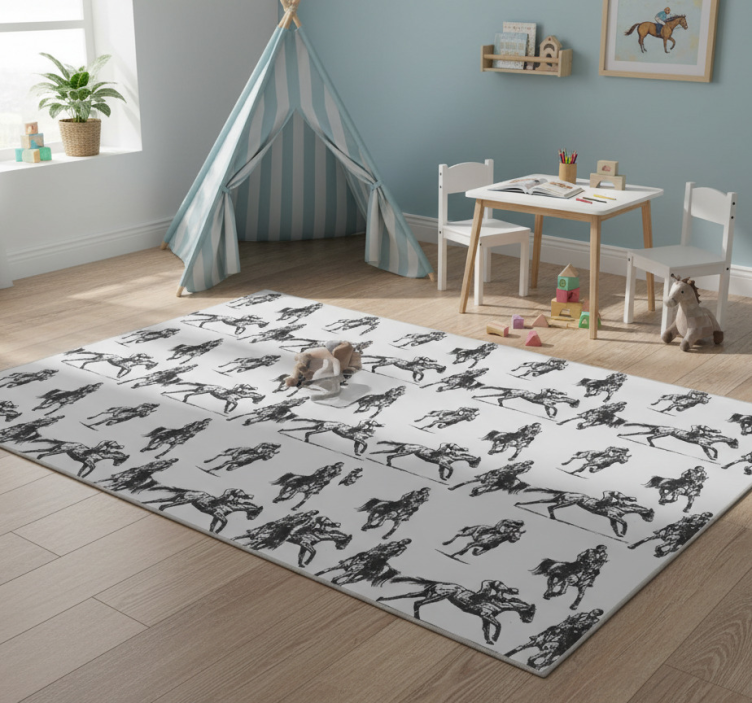Alfombra vinílica animales caballos grises del oeste