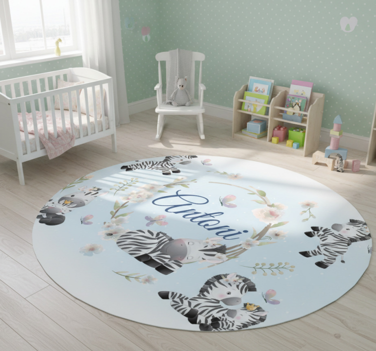 La alfombra vinílica animales cebra bebé con nombre es la elección perfecta para quienes desean añadir un toque divertido y personal a la decoración del cuarto infantil. Con su diseño alegre, esta alfombra no solo embellece el espacio, sino que también estimula la imaginación de los más pequeños. Con cada paso que den sobre su suave superficie, se sentirán en un mundo lleno de aventuras, haciendo de su habitación un lugar mágico donde los sueños cobran vida.