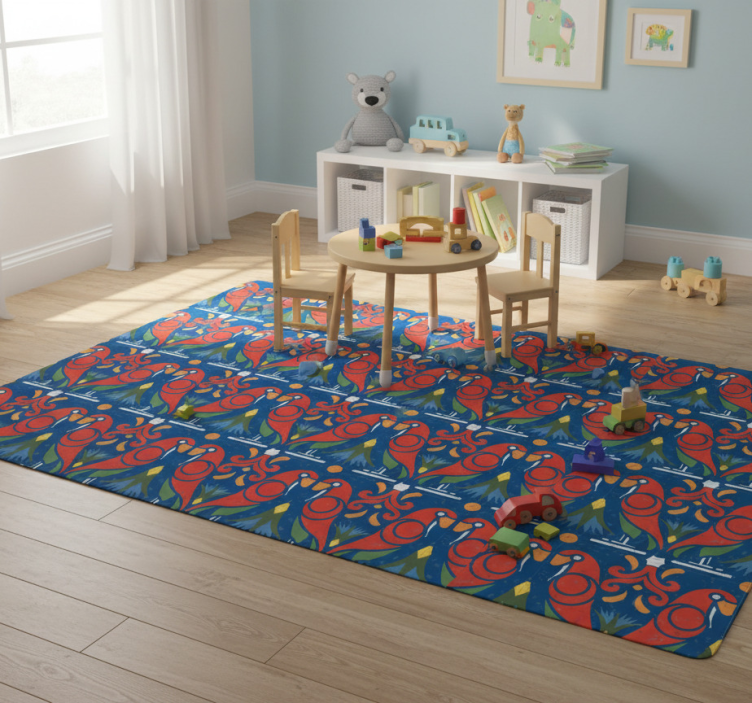 Alfombra vinílica animales diseño floral fondo azul