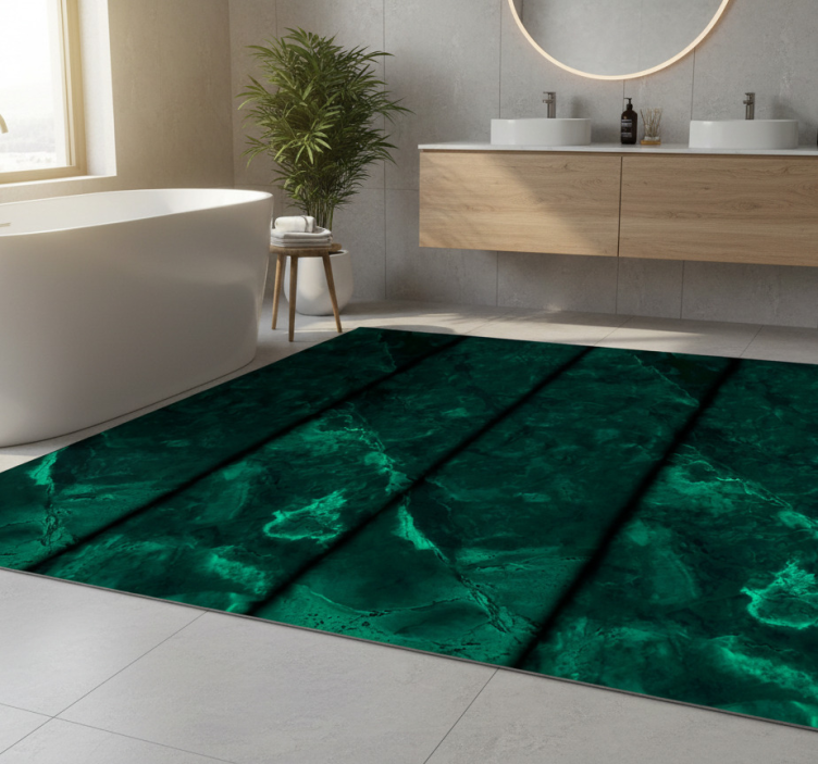 Alfombra vinílica baño efecto mármol negro y verde