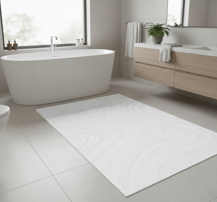 Alfombra vinílica baño patrón mármol blanco rayas grises