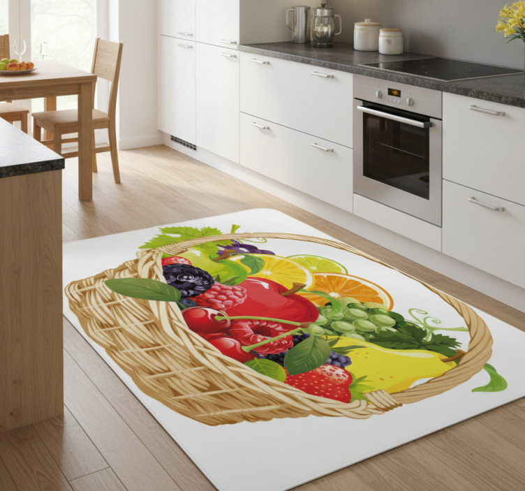 Alfombra vinílica cocina cesta de frutas