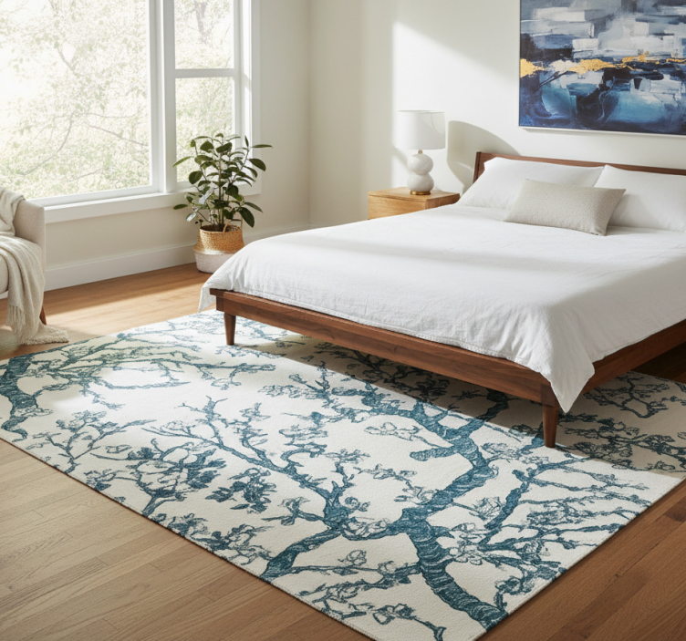 Alfombra vinílica dormitorio diseño de árbol azul oscuro