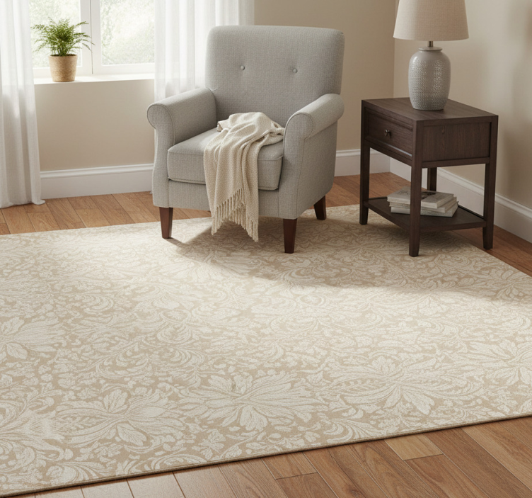 Alfombra vinílica dormitorio floral beige clásico