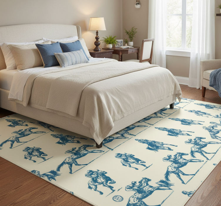 Alfombra vinílica dormitorio patrón de caballos azul y beige