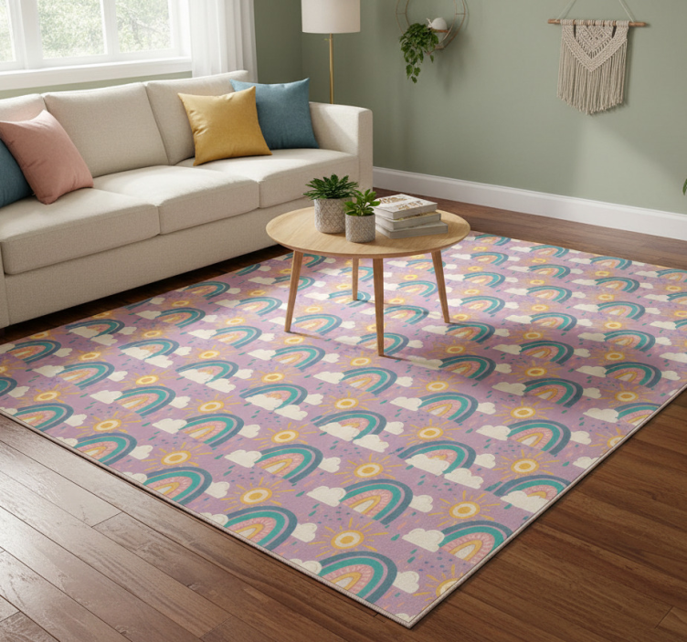 Alfombra vinílica flores arcoíris colorido y divertido