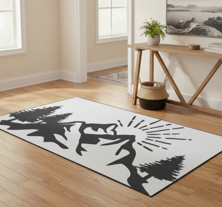Alfombra vinílica naturaleza silueta de montaña sol