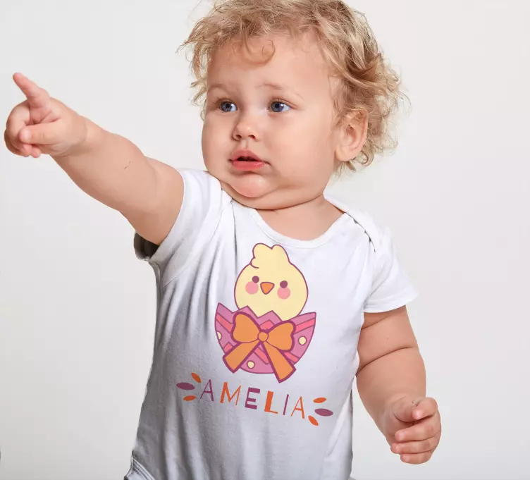 ¡Descubre la camiseta bebé pollito lindo con moño! Este encantador diseño presenta un adorable pollito que juega alegremente con un lazo colorido. La camiseta es un homenaje a la ternura de los pájaros bebés y la alegría de la infancia, con un estilo vistoso que hará que cada pequeño se sienta especial. Personalízala con el nombre de tu bebé y dale un toque único que refleje su personalidad juguetona. ¡Perfecta para cualquier ocasión!