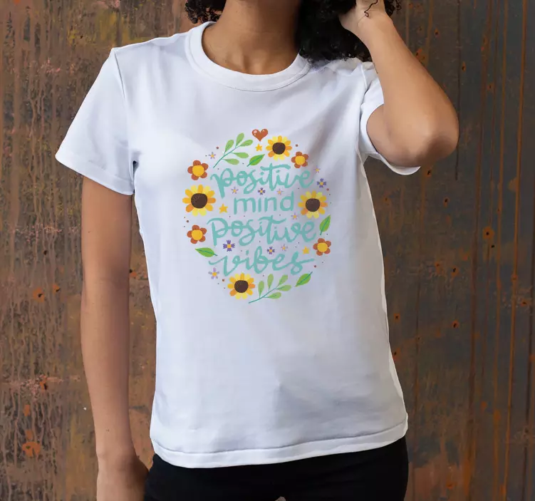 La camiseta buenas vibras mentales es una celebración de la positividad y la conexión con la naturaleza. Con un vibrante diseño que incluye girasoles, flores y un corazón, esta prenda irradia energía motivacional. El texto inspirador invita a todos a mantener una mente positiva y a abrazar las buenas vibras, convirtiéndola en una elección perfecta para quienes buscan expresar su consciencia y amor por la vida.