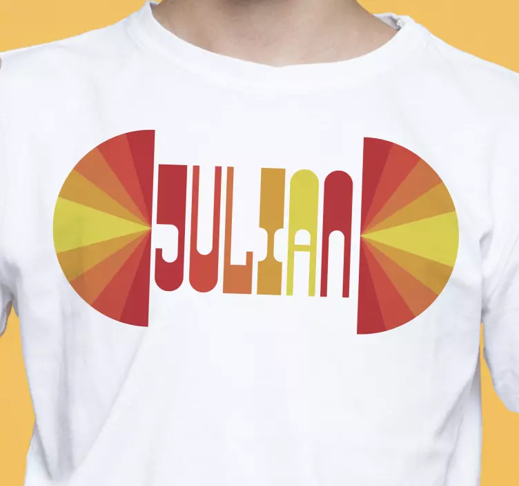 Esta camiseta vintage tiene un diseño de dos medios soles a rayas en amarillo, naranja y rojo. Lo mejor de todo es que puedes personalizarla con el nombre que quieras en el medio, ¡con los mismos colores! Así que siéntete libre de añadir el nombre que prefieras y lo ajustaremos a tu camiseta original vintage.