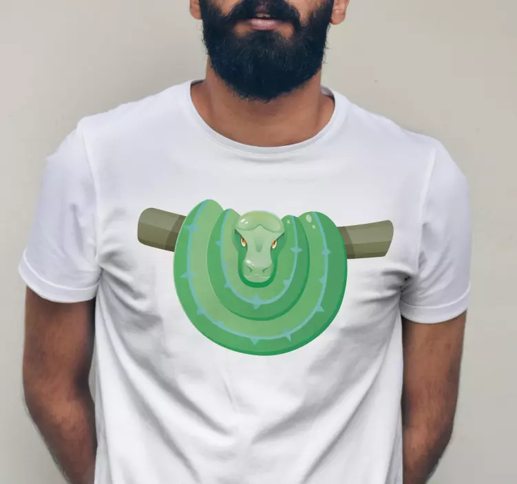 Presentamos la camiseta diseño verde serpenteante, una prenda única que destaca por su elegante ilustración de una boa serpiente en una rama, con un estilo de dibujos animados que le da un toque casual y divertido. Su color verde vibrante hace que sea perfecta para quienes buscan un look fresco y original. ¡No te quedes sin la tuya!