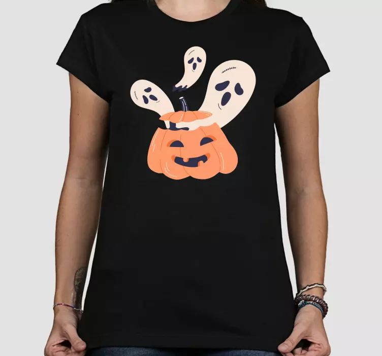 Referencia: T4756Este diseño vibrante presenta una calabaza alegre con fantasmas juguetones emergiendo de ella, evocando un espíritu de Halloween ligero y divertido. Los elementos coloridos son ideales para quienes buscan celebrar la temporada con un toque de diversión y fantasía.
