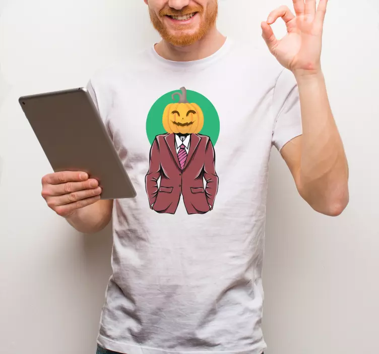 ¡Celebra la Víspera de Todos los Santos con nuestra camiseta halloween traje de cabeza de calabaza! Este divertido diseño presenta una calabaza sonriente combinada con un elegante smoking, creando un look único y gracioso que hará que todos se giren a mirarte. Perfecta para cualquier celebración de Halloween, esta camiseta es el disfraz ideal para aquellos que buscan destacar con un toque de humor en su atuendo.