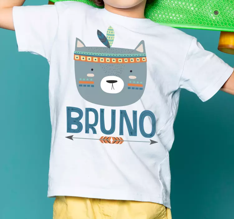 Referencia: T4968Este diseño presenta una adorable cara de oso con elementos tribales, resaltada por colores vibrantes y un nombre personalizado. Irradia una vibra alegre, perfecta para los niños. La composición es atractiva y visualmente appealing, lo que la convierte en una opción ideal para los más pequeños.