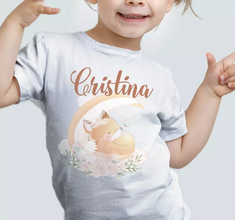 Descubre la camiseta niños zorro durmiendo con nombre, un diseño encantador que presenta un adorable zorro dormido bajo la suave luz de la luna, rodeado de nubes y flores. Este caprichoso y lindo diseño, ideal para bebés y niños, combina elementos de la naturaleza con un toque personalizado que hará sonreír a cualquier pequeño.