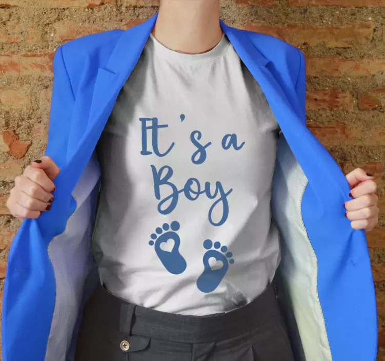 ¡Presentamos la camiseta personalizable revelación de bebé en camino! Este diseño alegre captura la esencia de la celebración de un nuevo miembro en la familia. Con gráficos encantadores de un chico, pies, y una madre embarazada, la camiseta irradia felicidad y anticipación. Incluye un texto que anuncia la llegada de un bebé recién nacido, convirtiéndola en la elección perfecta para padres que desean compartir su emocionante noticia con el mundo.