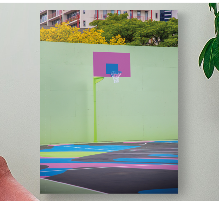 Descubre la energía vibrante de nuestro Cuadro deporte cancha de baloncesto colorida, una obra que captura la esencia del baloncesto en un diseño lleno de vida. Con elementos como la cesta y la canasta, esta fotografía urbana refleja la pasión por los deportes. Su corte perfecto y colores brillantes hacen que esta pieza sea un verdadero imán para la vista, ideal para cualquier amante del baloncesto.