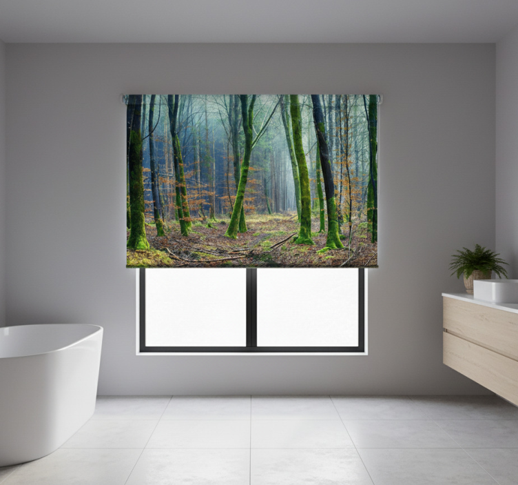 Cortina roller árboles bosque nublado japandi