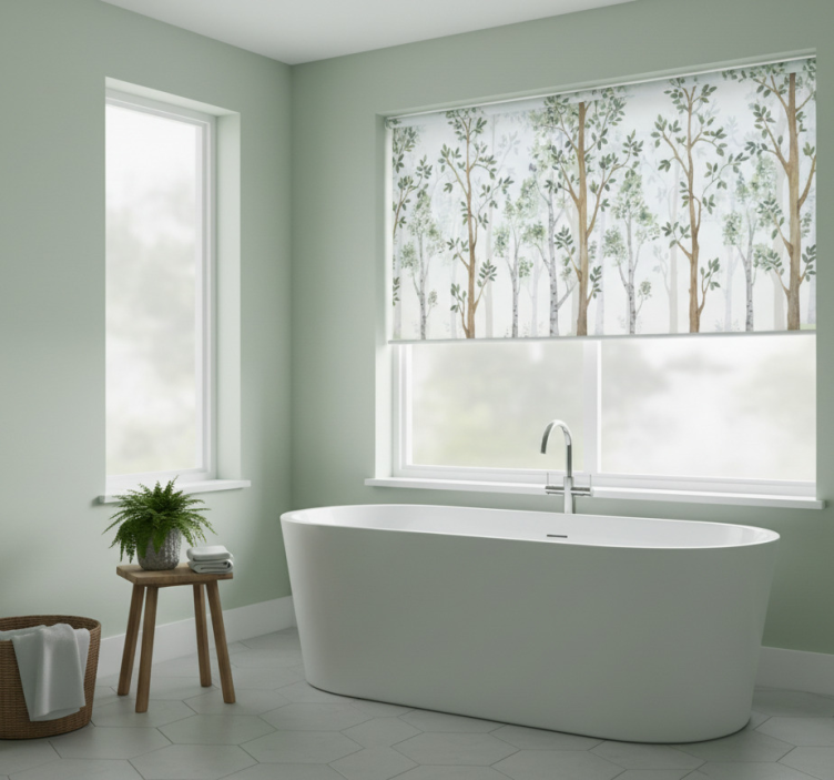 Cortina roller árboles diseño botánico minimalista