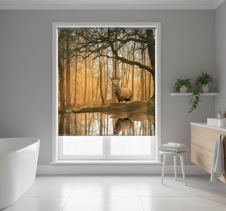 Cortina roller árboles lago ciervo dorado