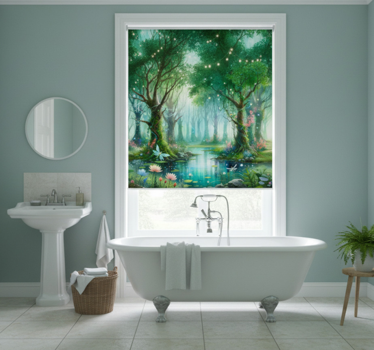 Cortina roller árboles mural de hadas caprichoso
