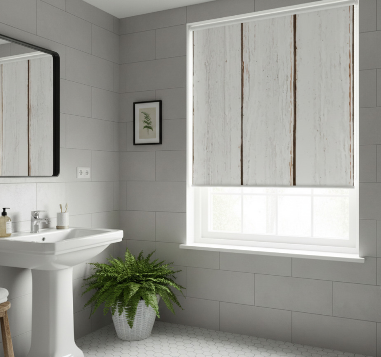 Cortina roller baño madera vintage rayas verticales