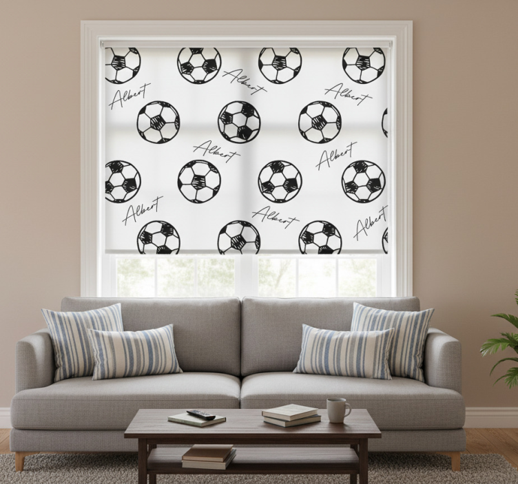 Referencia: E8493Transforma tu espacio con la Cortina roller blanca fútbol con nombre, un producto que combina estilo y funcionalidad. Su diseño gráfico presenta un fondo blanco elegante adornado con motivos de fútbol y el nombre que elijas, creando un ambiente divertido y personalizado. Ideal para los amantes del deporte, esta cortina no solo embellece, sino que también aporta un toque de alegría a cualquier habitación.