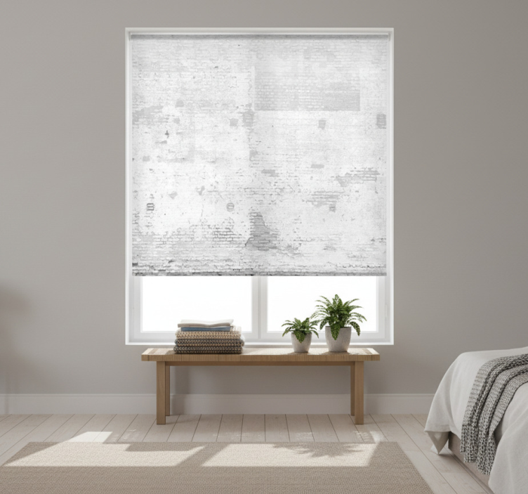 Cortina roller blanca pared blanca antigua