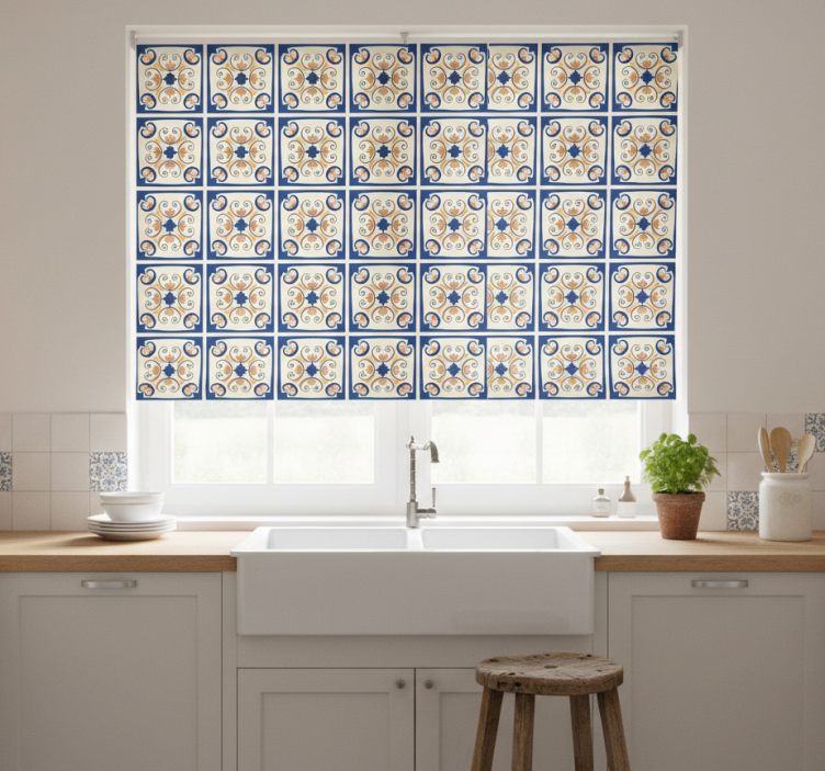 Cortina roller cocina azulejo portugués flores rosas