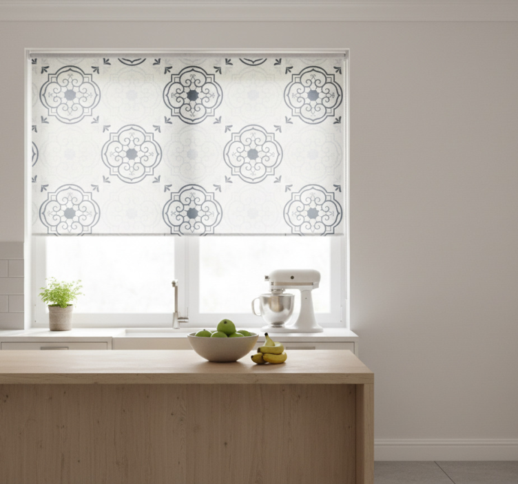Cortina roller cocina azulejos gris elegante