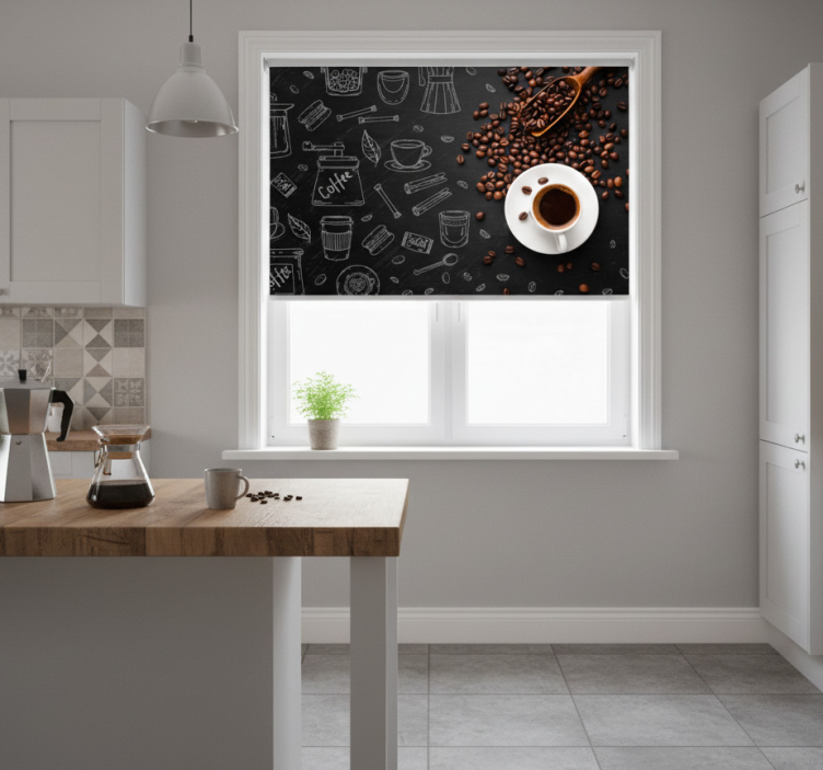 Referencia: E7955Descubre la encantadora cortina roller cocina granos de café y garabatos, un producto que combina un diseño gráfico único con la calidez de los granos de café y divertidos garabatos. Esta cortina no solo es funcional, sino que también transforma tu cocina en un espacio acogedor y lleno de personalidad.