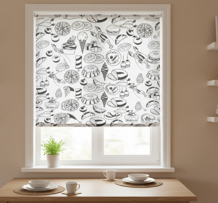 Cortina roller cocina patrón de comida blanco y negro