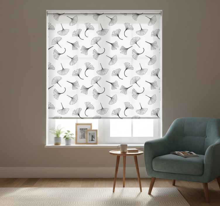 Cortina roller cocina patrón de hojas de ginkgo negro