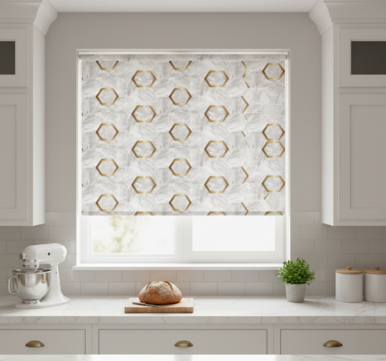 La Cortina roller cocina cortina roller cocina patrones hexagonales dorados es la solución perfecta para quienes buscan transformar su espacio. Este producto no solo embellece el ambiente, sino que también permite regular la luz y la temperatura, creando un entorno acogedor y estilizado. ¡Inspira a tus invitados con un diseño que habla de tu buen gusto y personalidad! La combinación de patrones y colores dorados añade un brillo especial que hará que tu cocina destaque.