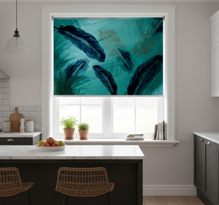 Cortina roller cocina plumas acuareladas estéticas