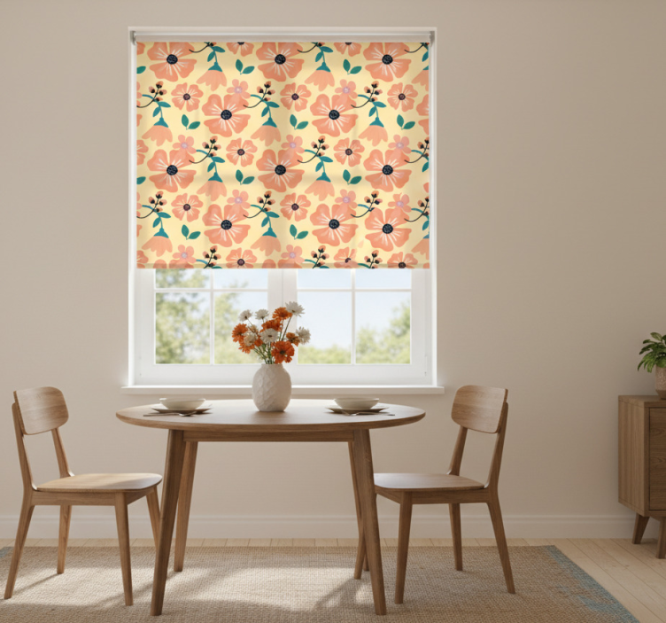 Referencia: E6671Transforma tu comedor en un espacio vibrante y acogedor con nuestra Cortina roller comedor flores naranjas. Este elegante diseño presenta un hermoso patrón de flores naranjas que aportan un toque de frescura y alegría a cualquier ambiente. Su estilo moderno y encantador combina la funcionalidad con la estética, haciéndola la opción ideal para quienes buscan decorar con buen gusto y originalidad.