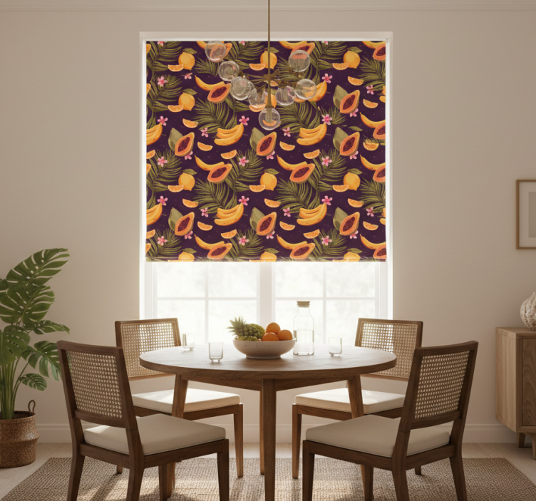 Cortina roller comedor motivo frutas tropicales
