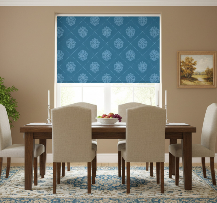 Cortina roller comedor patrón diamante floral