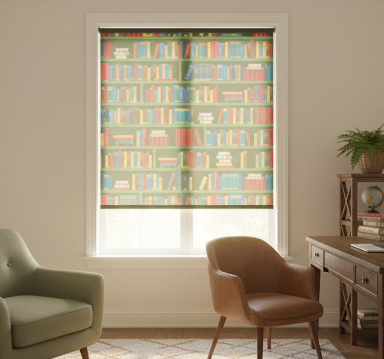 Cortina roller despacho biblioteca verde vintage
