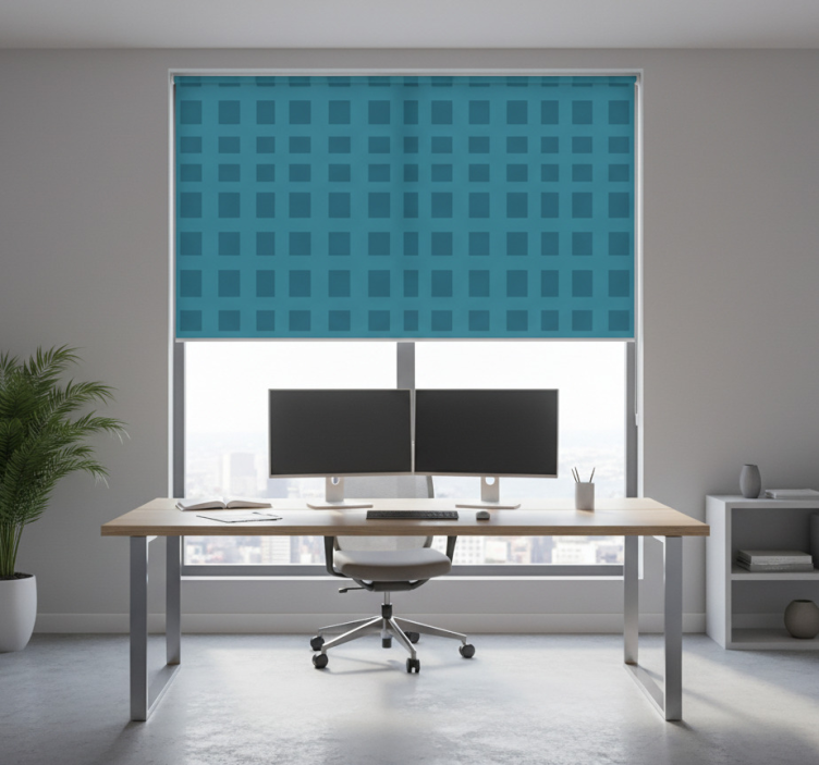 Cortina roller despacho patrón azul con cuadros