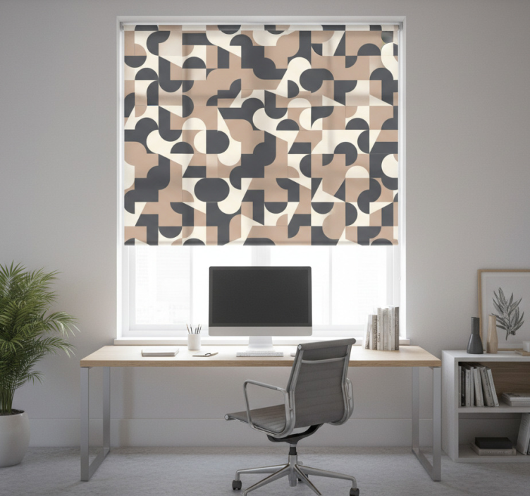 Cortina roller despacho patrón de colores contrastantes