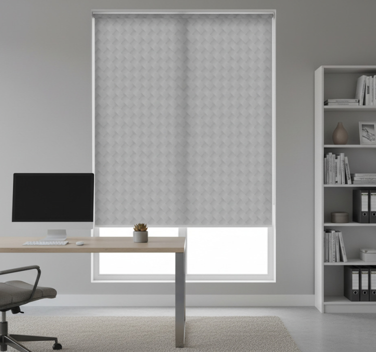 Cortina roller despacho patrón de cuadrados grises
