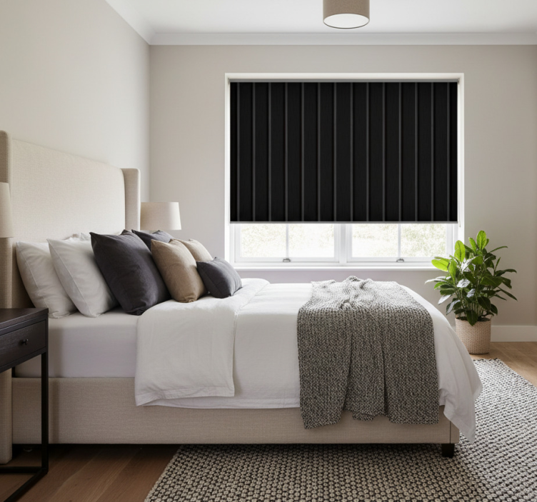 Cortina roller elegante panel negro rústico