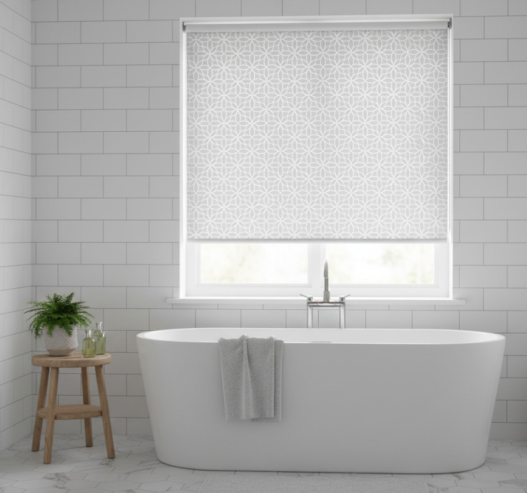 Cortina roller gris patrón moderno gris y blanco