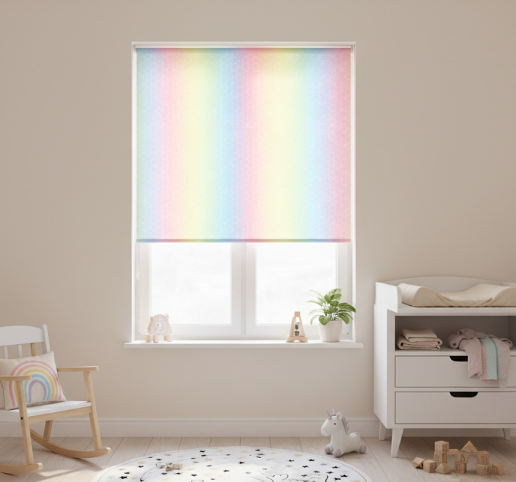 Cortina roller infantil fondo arcoíris pastel brillante