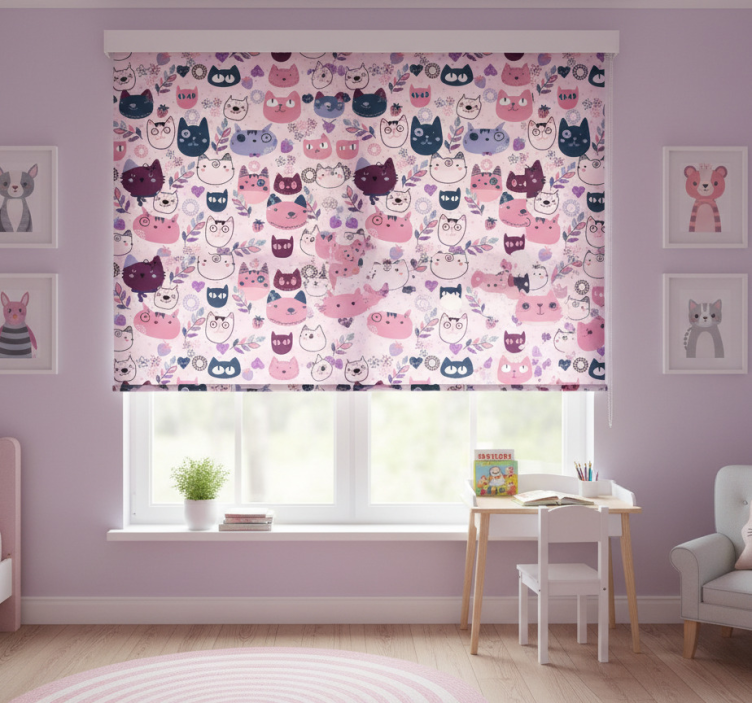 Cortina roller infantil patrón de gatos rosas