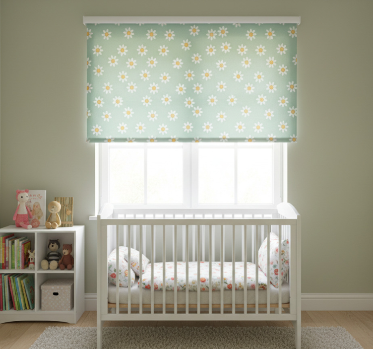 Cortina roller infantil patrón de margaritas